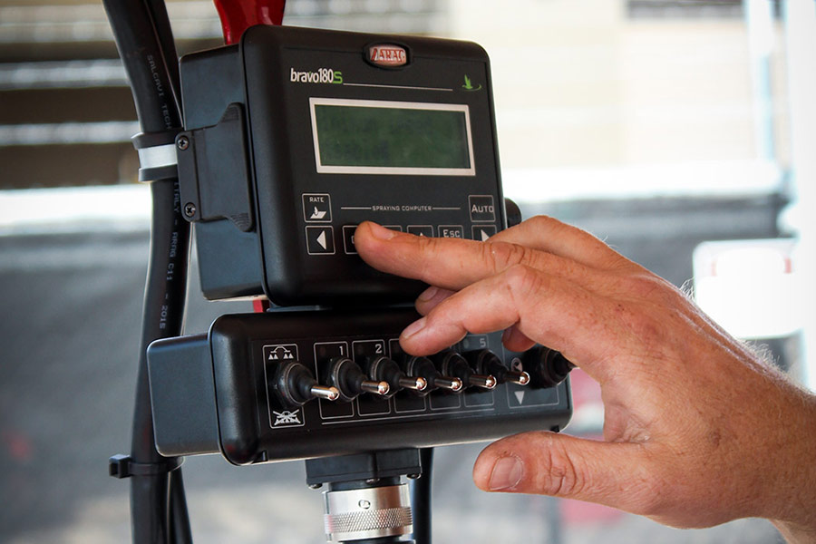 The Silvan can be used for a range of watering, fertilising and disease control activities, and has been fitted out for Tennis Queensland with a four metre cross-fold boom, fifteen metre hose reel, and an Arag Bravo 180 automatic rate control unit. This unit adjusts the sprayer’s rate of flow in accordance with machine speed, using a GPS sensor. This ensures even spray coverage independent of the operator’s driving. The Bravo also includes a control unit that provides easy operation of the spray unit’s functions from the driver’s seated position, including valve opening and flow adjustments.